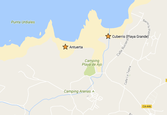 Esta playa se encuentra pegada a la playa de Cuberris, sin embargo es fácil pasarla por alto.